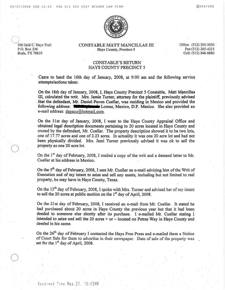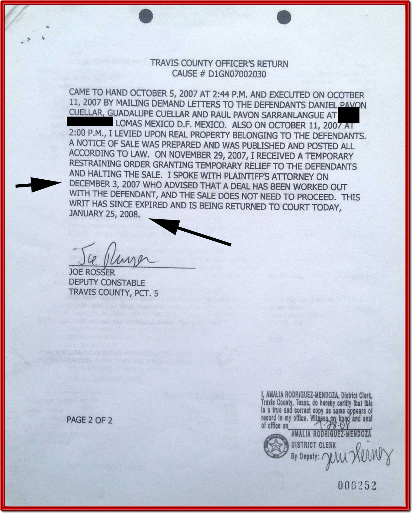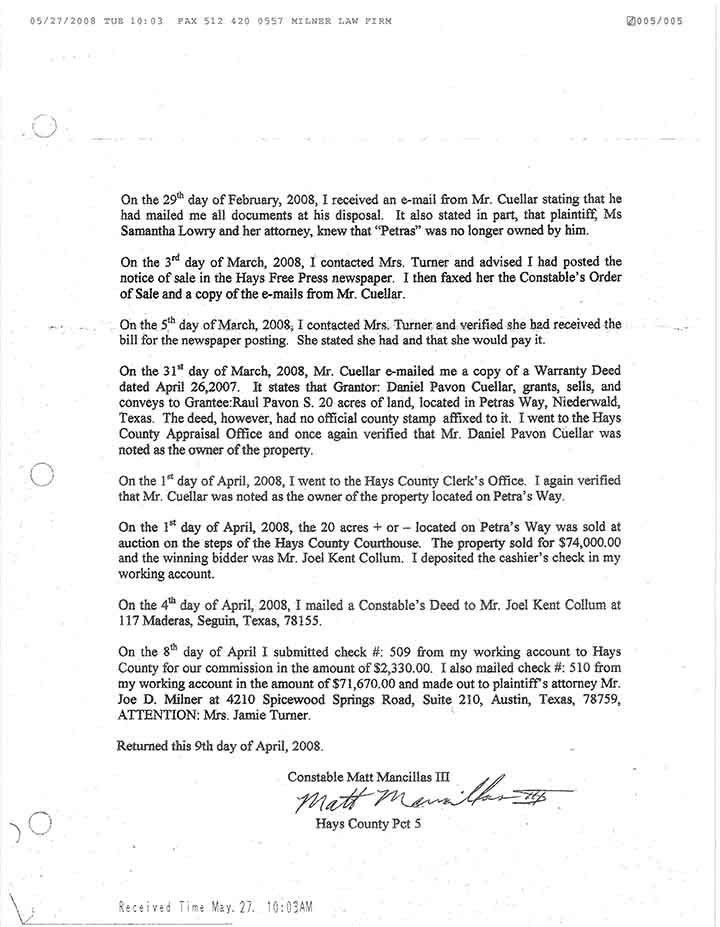 DEED FILED IN COURT CASE, Constable Confirms Deed Reception.