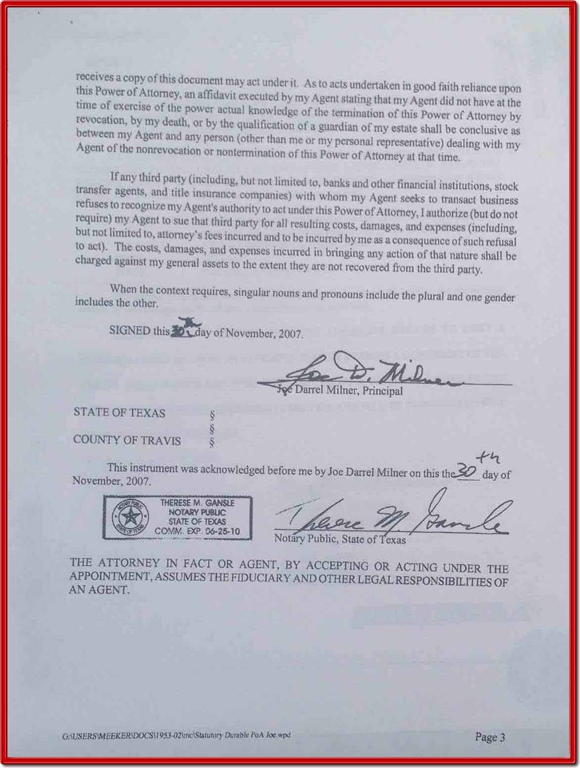The Milner Family Gets A Power of Attorney To Continue Fraud,
